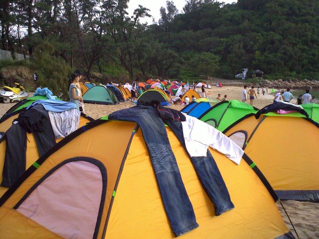 1、三门岛露营,因为前晚下雨,东东都湿了